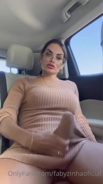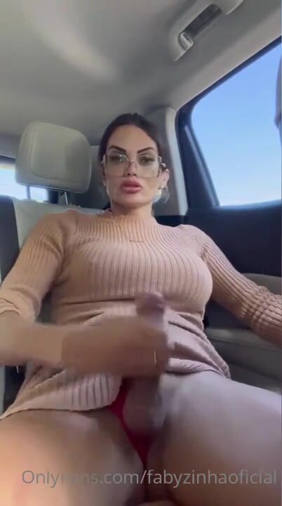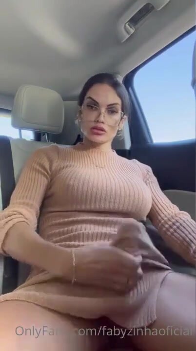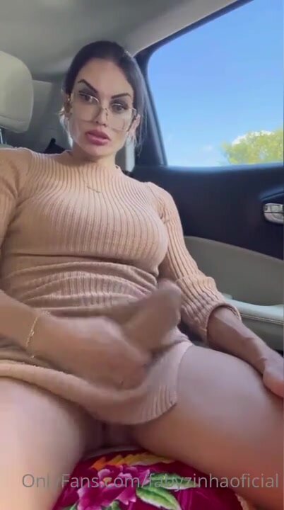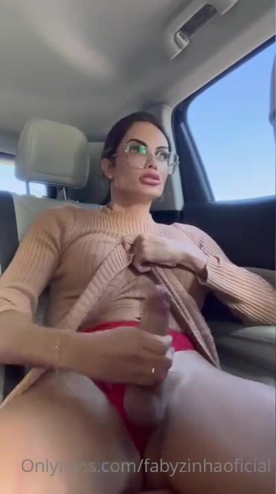 Bella puttana trans nell'auto in un parceggio isolato si svuota le palle con un segone