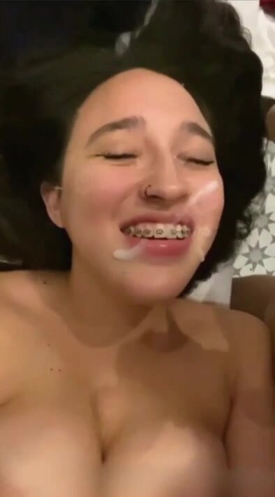 Tutta contenta di aver preso la sborra in faccia