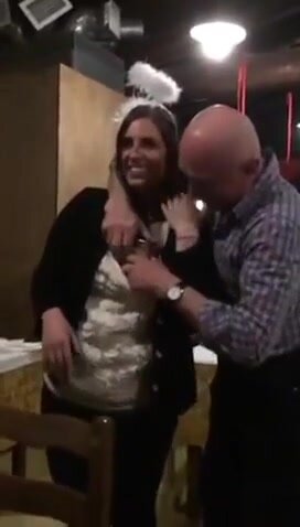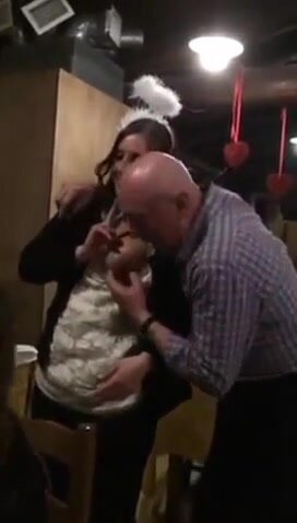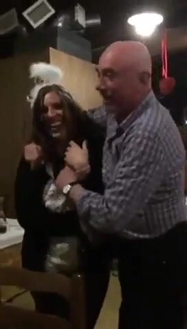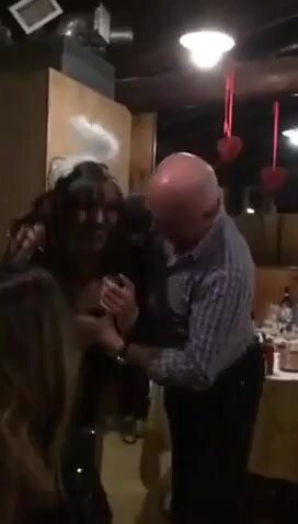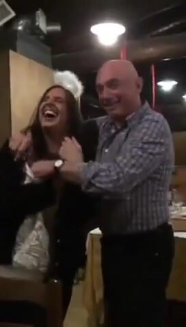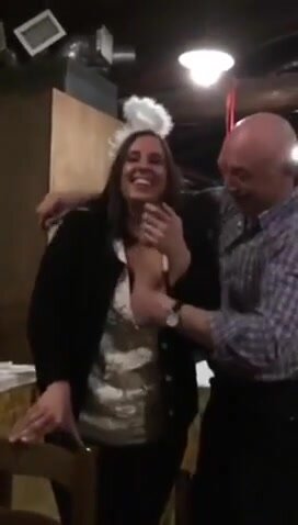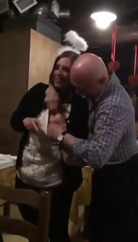 Vecchio maiale italiano succhia le tette della stagista