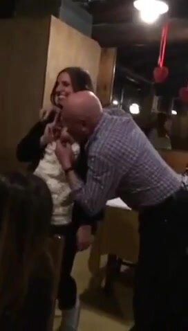 Uomo italiano cinquantenne al bar con amici e con giovani mignotte cui paicciono gli uomini maturi e pieni di soldi da buttare