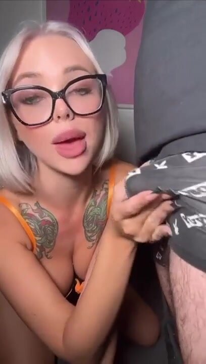 Vogliosa di cazzo la biondina gioca co lsuo uccello da fuori