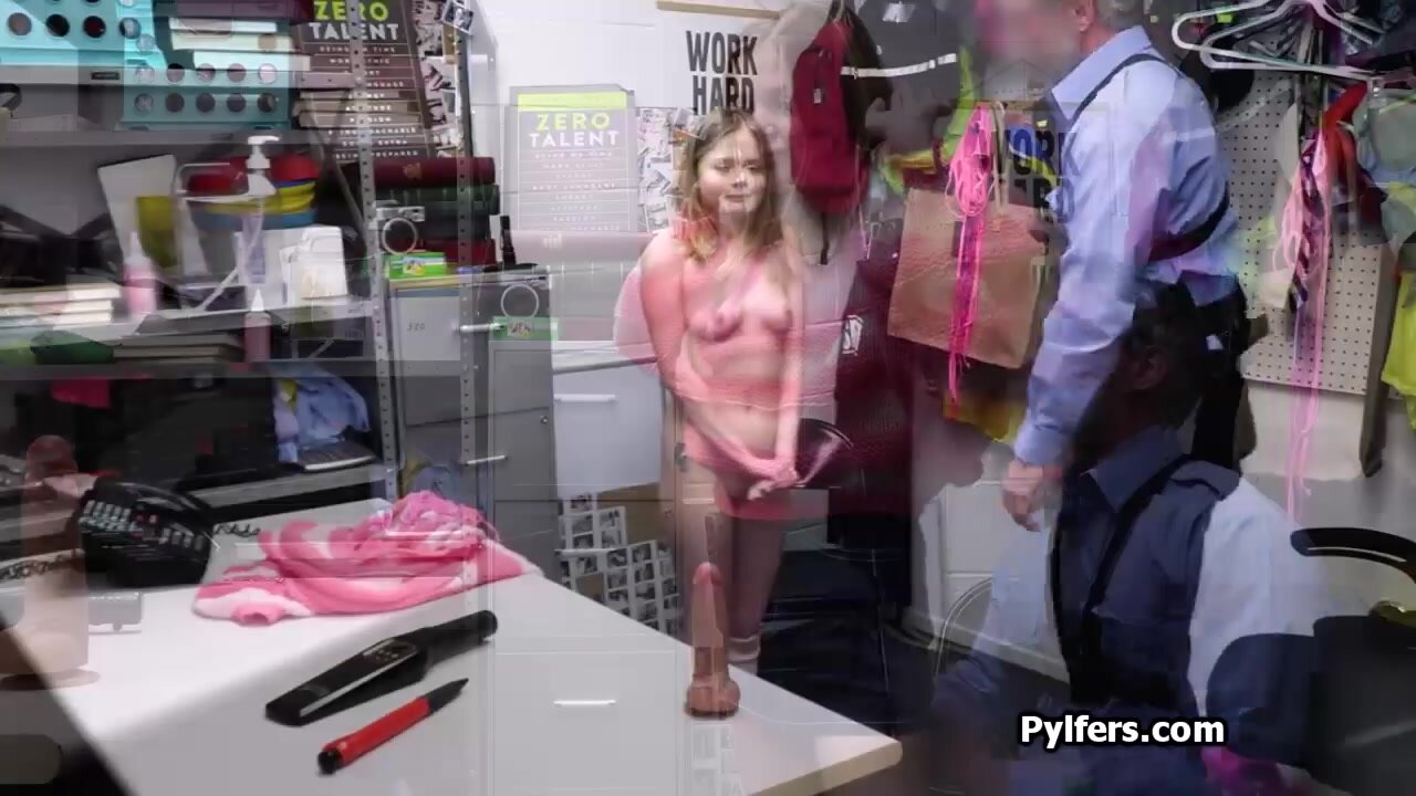 Seems like this petite blonde really wants to have some fun with a dick.. so she stole a dildo, but the security guard will lend her his hard stick for a wild and hard ride!