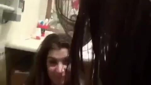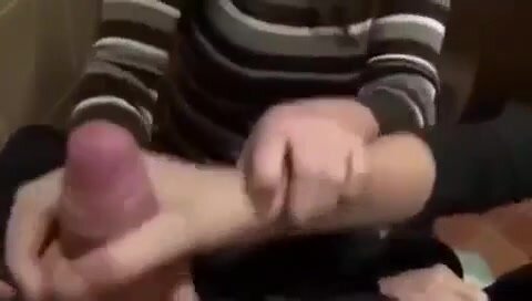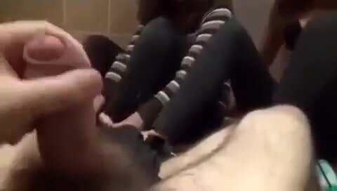 Ragazzo eccitato in bagno ne approfitta e si fa segare dalle amiche: le due zoccole lo circondano, mani sulle palle e pompate veloci, lo fanno sborrare schizzi potenti mentre ridono da porche.