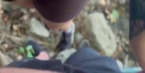 Giovane mamma spompina il nuovo fidanzato all'aperto, tette al vento