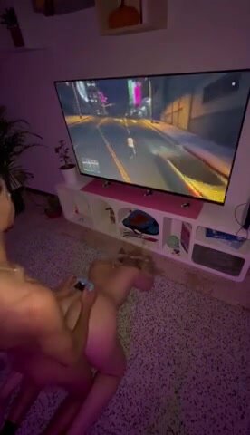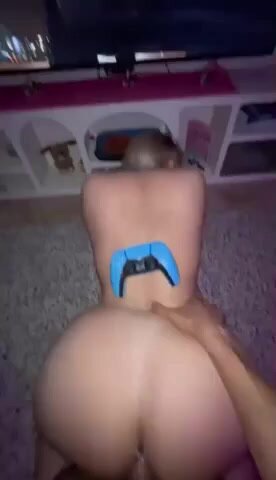 Si scopa la fidanzata a novanta mentre gioca alla Play sborrandole il culone: controller in mano, lei a pecorina col culo in aria, la chiava forte e le sborra caldo sul culo rotondo mentre continua a giocare.