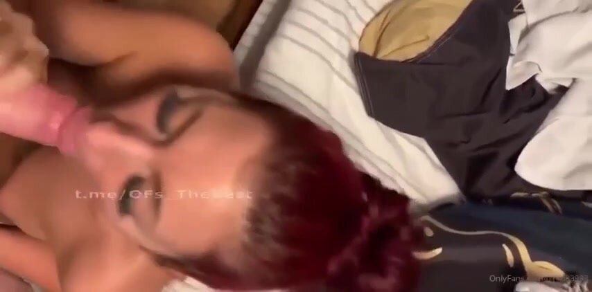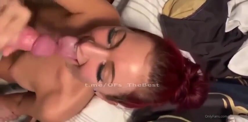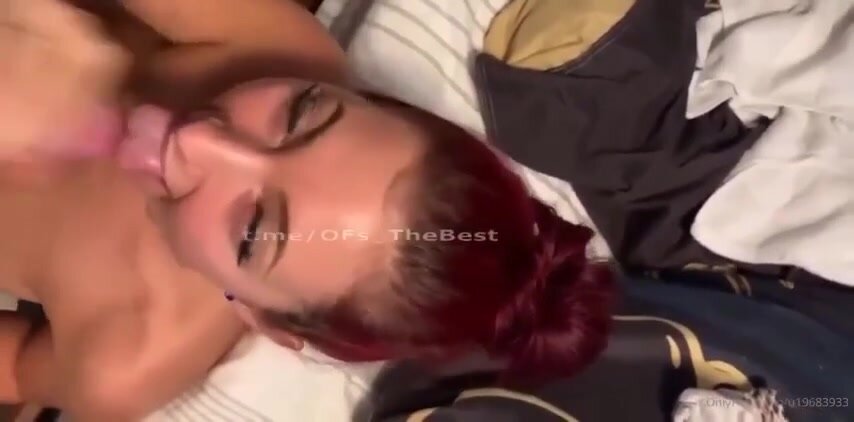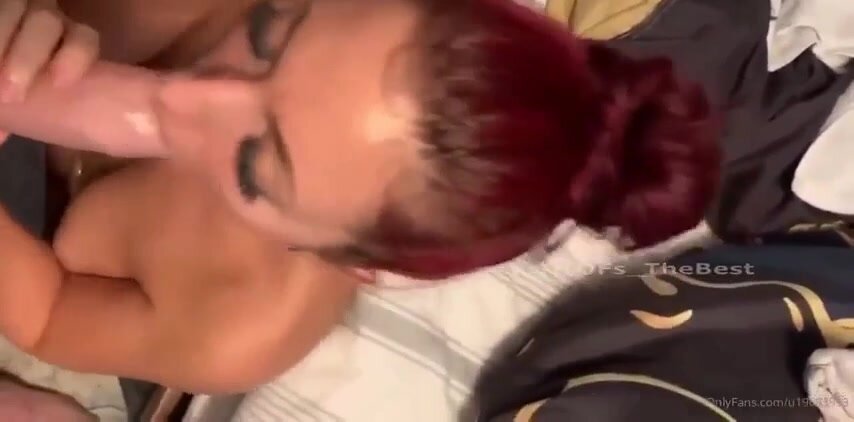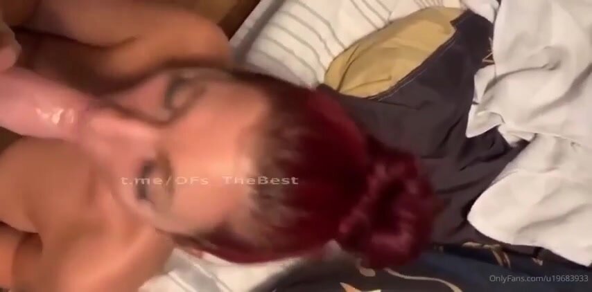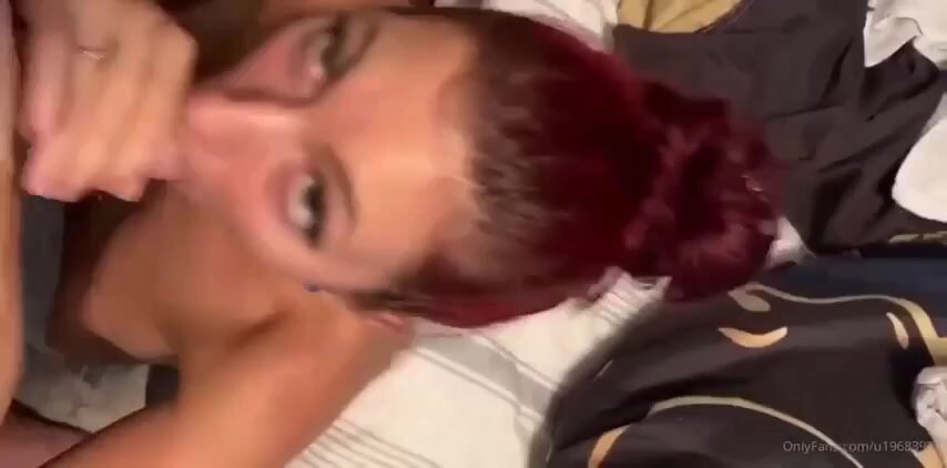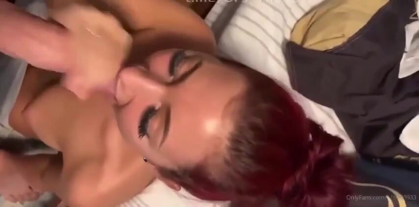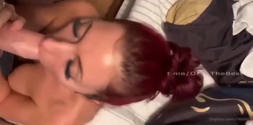 Rossa fidanzata succhia il cazzo al suo fidanzato: capelli fiammeggianti, bocca calda che ingoia il cazzo fino alle palle, lecca le palle e lo fa venire in gola da troia devota e porca.