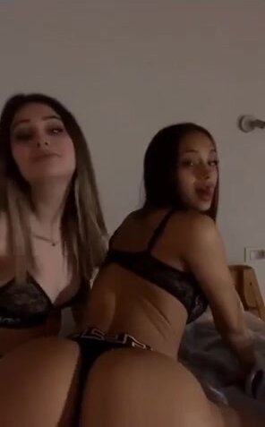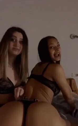 Due amiche gnocche con un culo che parla: pere enormi che ondeggiano, perizoma che sparisce tra le chiappe, si strusciano e si palpano il culo perfetto davanti alla cam da zoccole irresistibili.