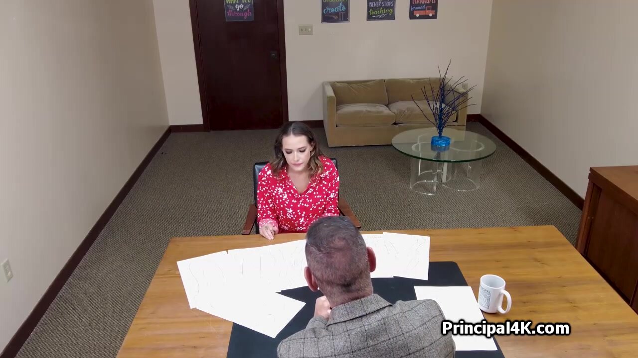 Spicy big tit cougar Mrs. Dannie used her big boobies to make peace with the principal. He was more than happy to put his big dick inside her!
