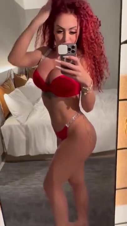Simona Renzetti si riprende in mutandine rosse davanti allo specchio e mette in mostra il suo bel culo: la sensuale Simona Renzetti filma se stessa in intimo rosso fuoco davanti allo specchio, gira su se stessa, sculetta, si abbassa le mutandine e sfoggia un culo tondo e invitante con pose provocanti da vera modella hot