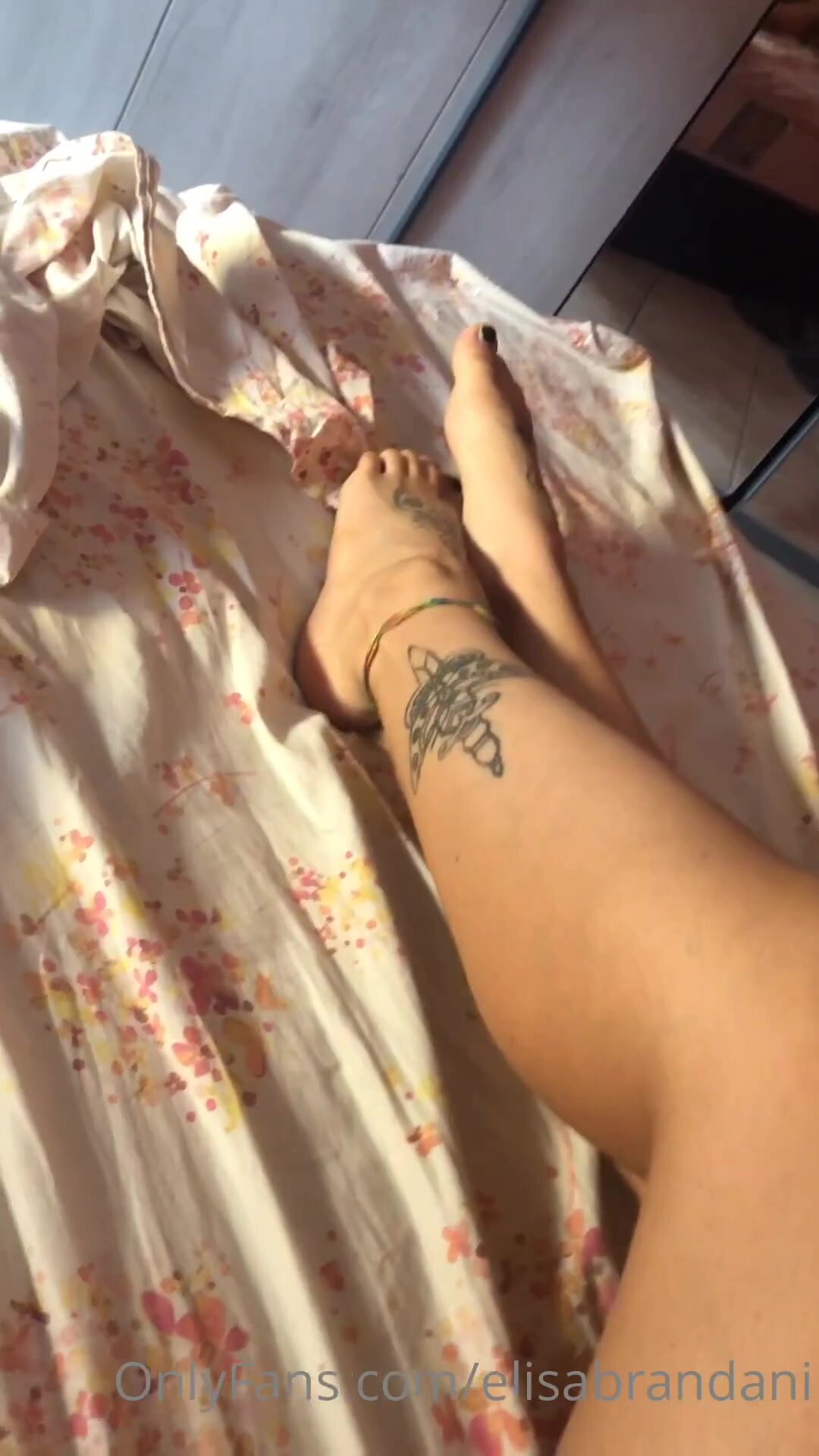Mostra I suoi piedi e il suo corpo tutta la nuda sul letto