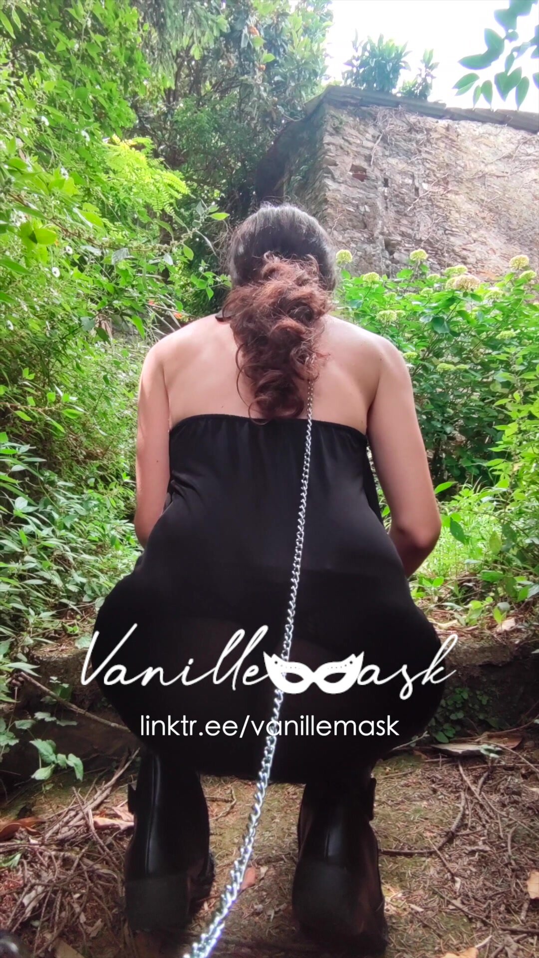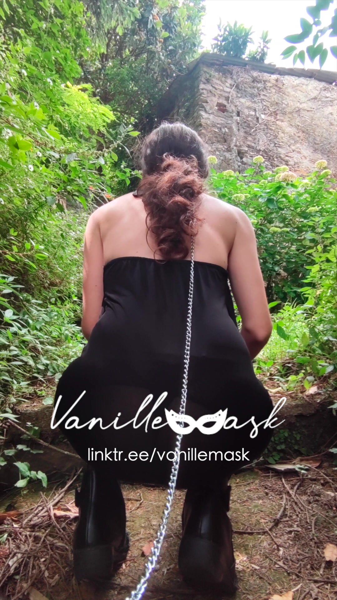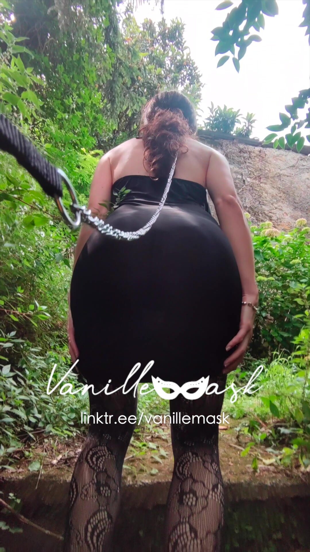 Vanille si fa portare al guinzaglio dal padrone nel bosco e alterna gli squat e comportamenti da maialina dove sculetta nel bosco e segue gli ordini del padrone