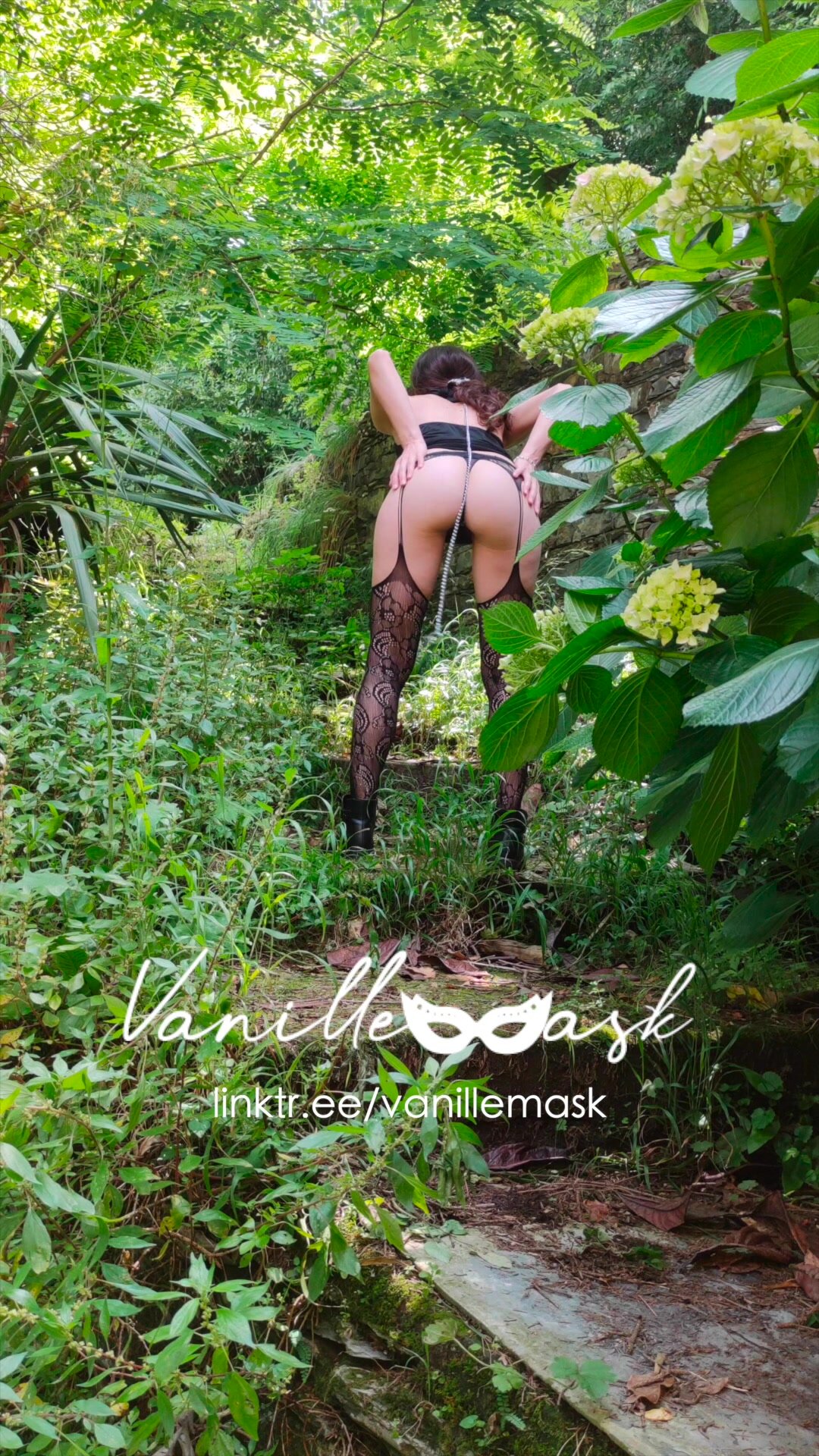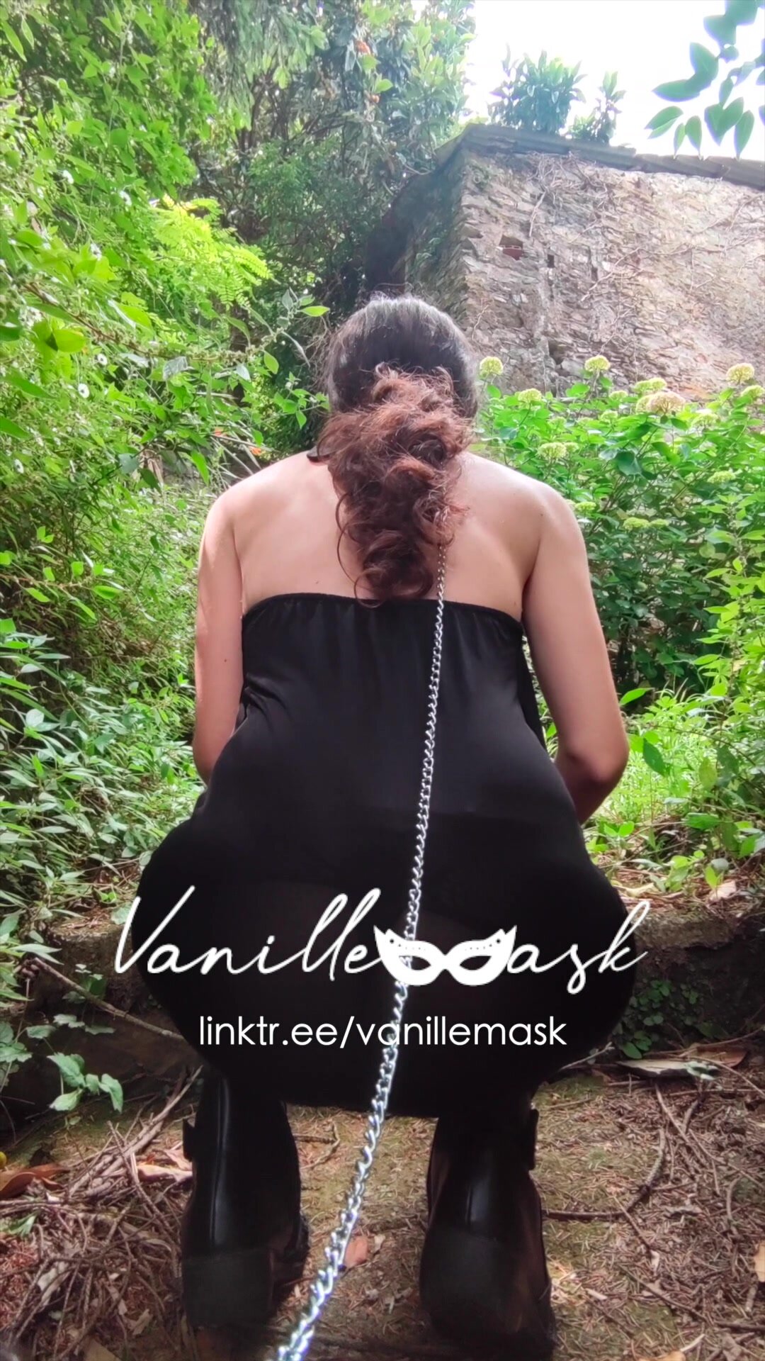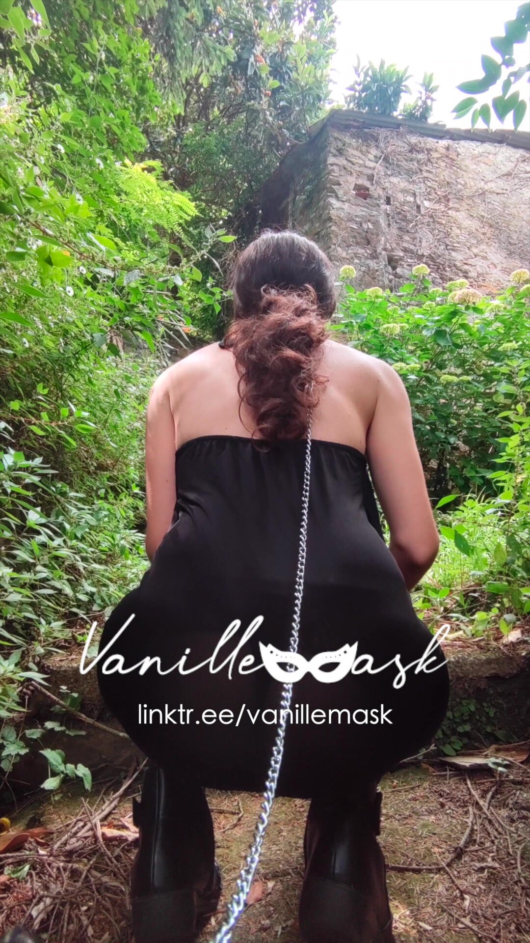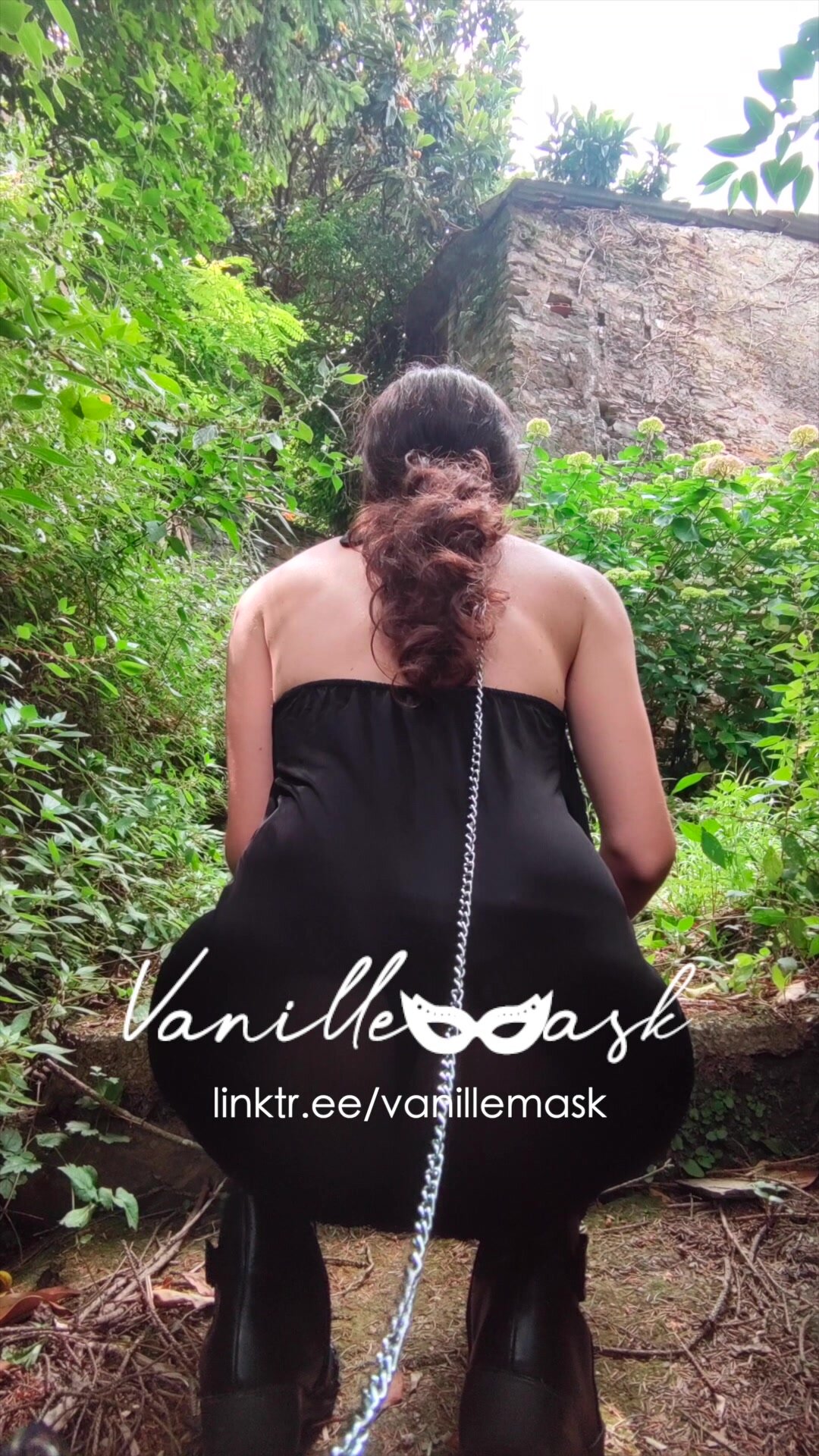 Vanille si fa portare al guinzaglio dal padrone nel bosco e alterna gli squat e comportamenti da maialina dove sculetta nel bosco e segue gli ordini del padrone