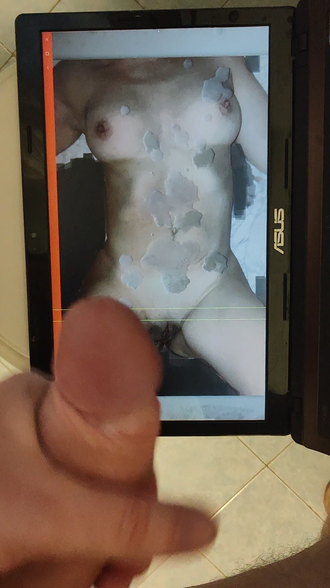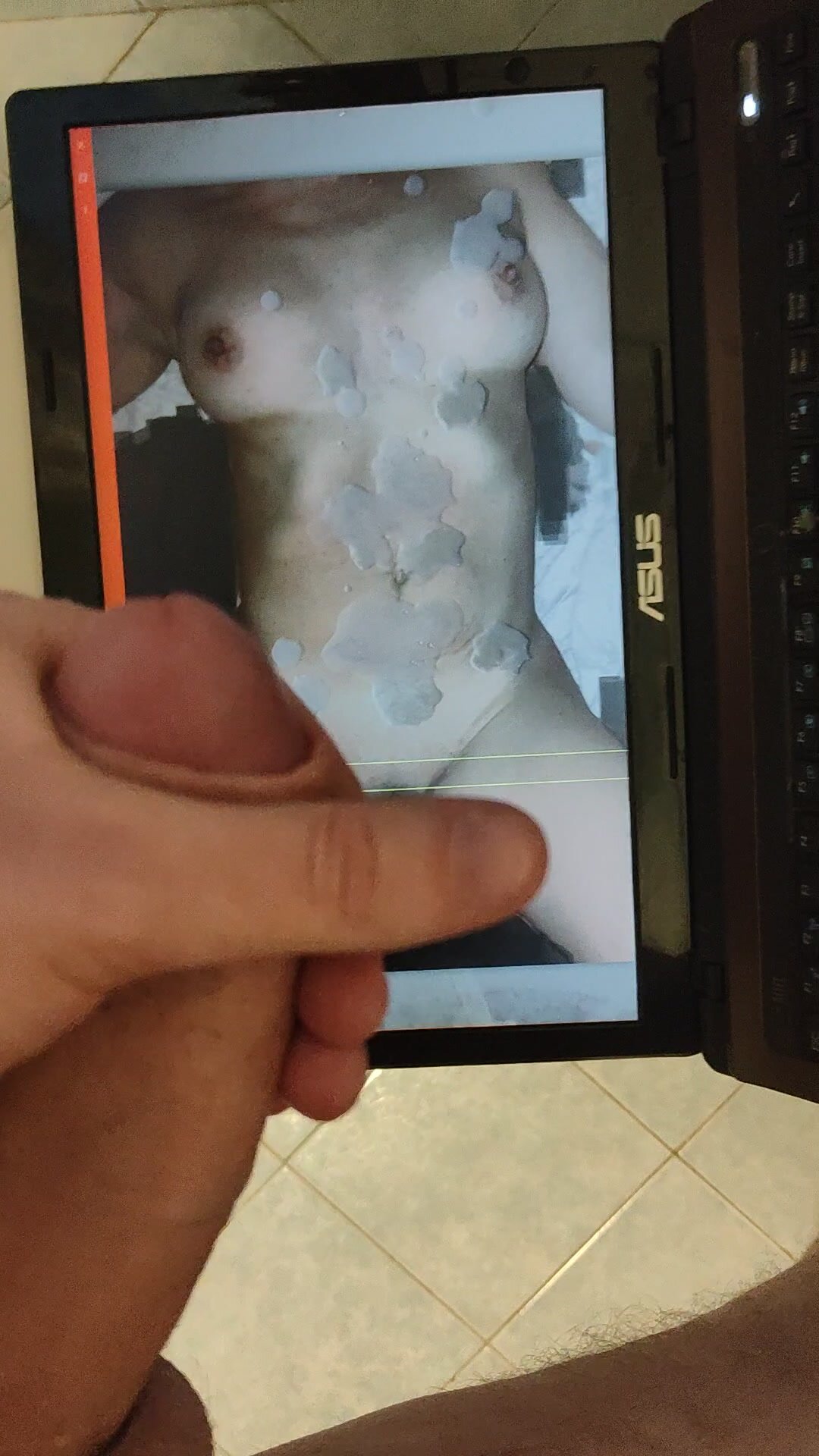 Ancora Elena, che con quelle bellissime tette mature mi fa eccitare tantissimo tanto da farmi schizzare sperma ogni volta addosso a lei... questa volta le ho chiesto di riempirle tutto il corpo e lei si è spogliata completamente e distesa in questa maniera facendosi riempire tutta di sborra calda