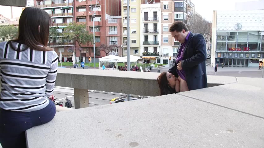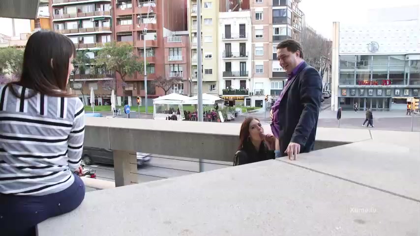 La neo pornostar Rebecca Volpetti si esibisce in un pompino in pubblico a Barcellona ad Andrea Diprè. Rebecca gli slaccia la cintura e gli tira giù i calzoni per poi succhiarglielo alla grandissima