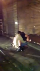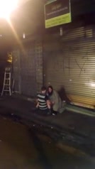 Video amatoriale voyeur in cui un ragazzo sditalina la fidanzata ubriaca seduta per terra in mezzo ai passanti che li guardano e filmano la scena sorprendente con i loro telefonini
