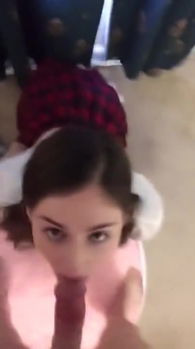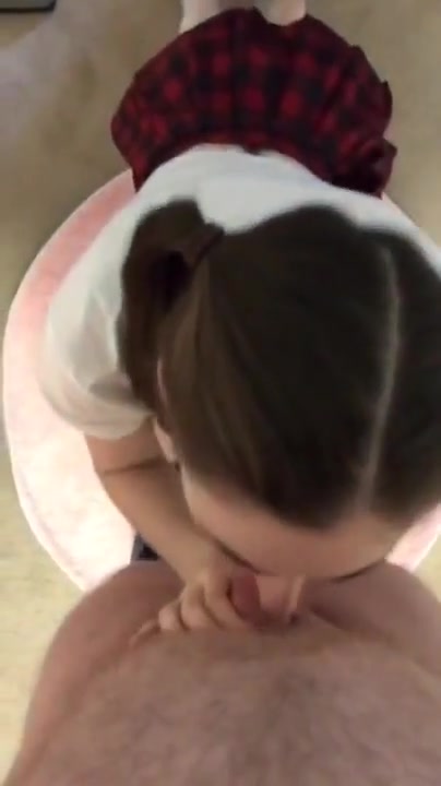 Un ragazzo filma in POV la sua ex fidanzata coi codini e vestita da scolaretta che lo spompina in ginocchio succhiando di brutto fino a farlo venire sulla sua faccia da innocente teenager