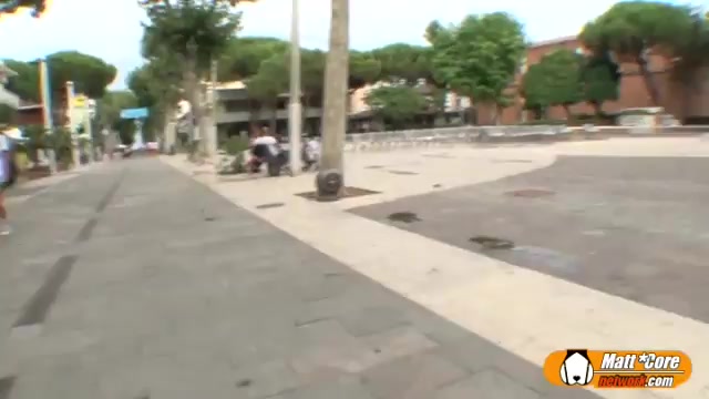 Video porno italiano con l'attraente e conturbante rossa nostrana Valery Vita che dopo un bocchino in macchina si farà chiavare da due uomini sulla terrazza di un bel attico