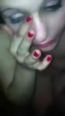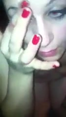 Soddisfatta dopo una pompa si lecca la sborra dalla faccia mentre il fidanzatino la filma con lo smartphone e la insulta pesantemente dandole della zoccola di merda