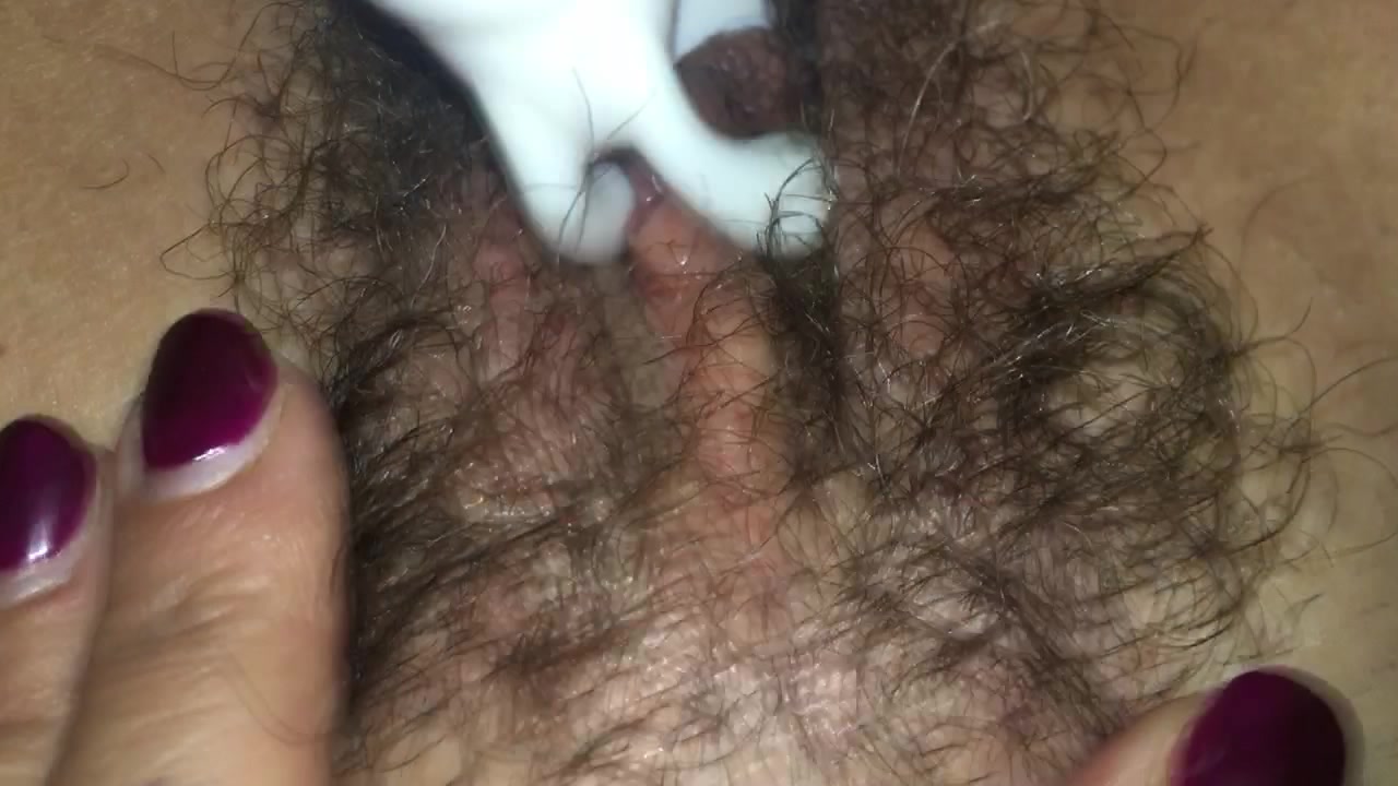 Si massaggia con un sex toy la fica pelosa