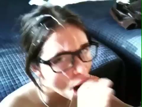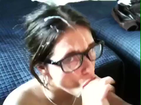 Pompino con sborrata abbondante in faccia e sugli occhiali