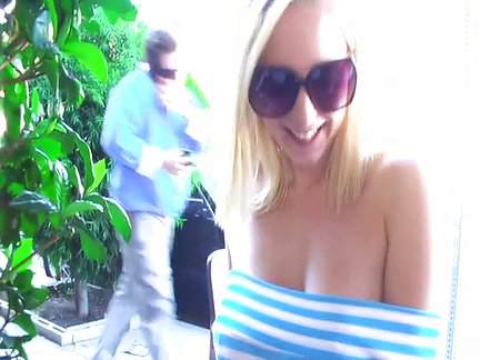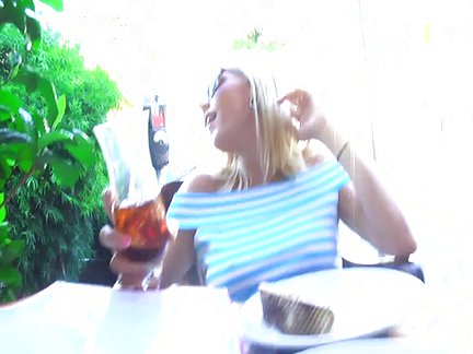 Bella bionda si masturba in un caffè