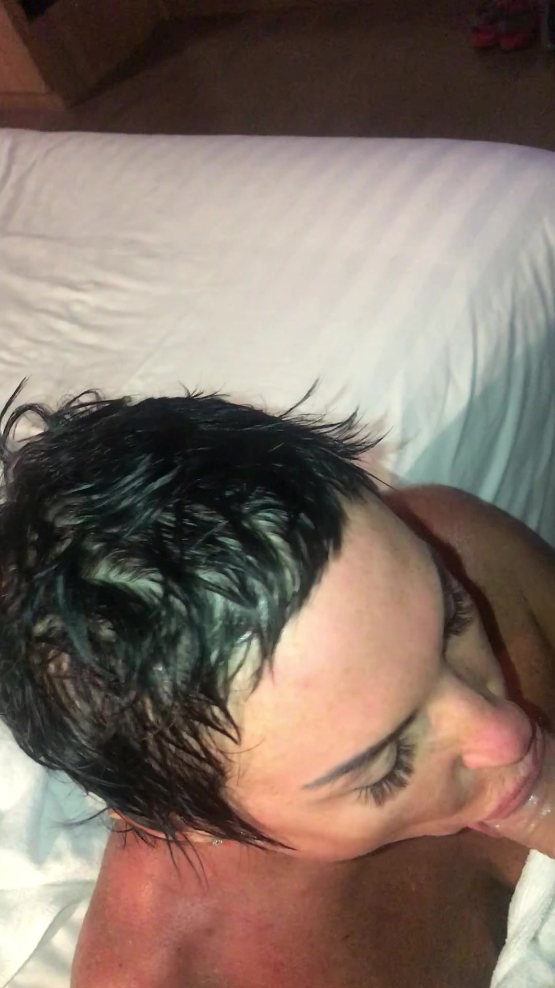 Ecco mia moglie mentre quest'estate spompina un uomo in albergo dopo essere uscita dalla doccia