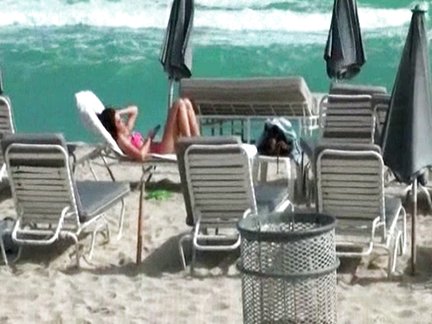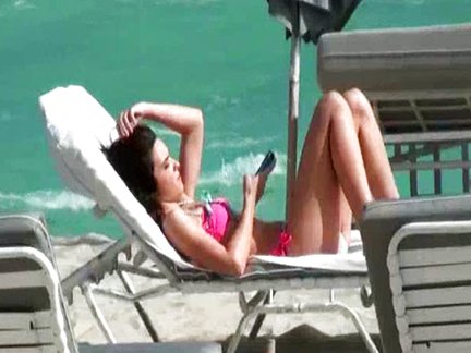 Teen brunetta spiata sulla spiaggia