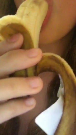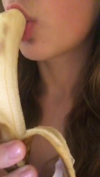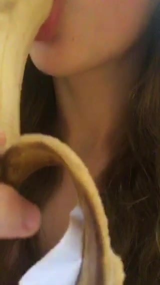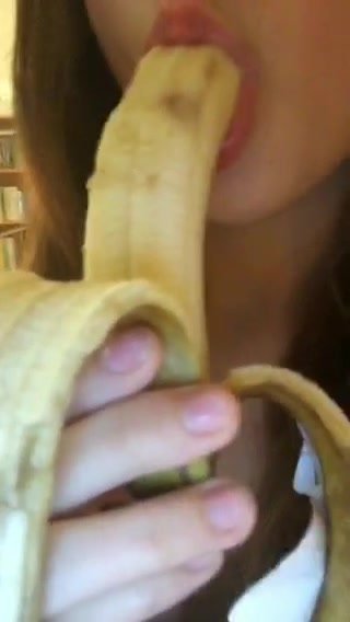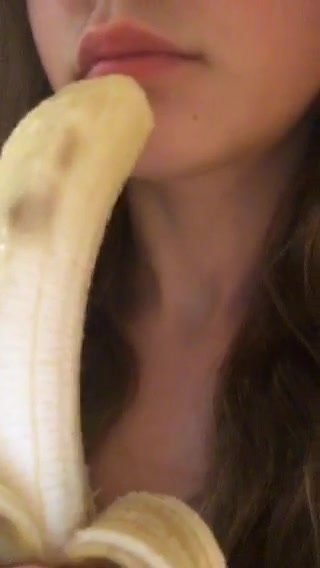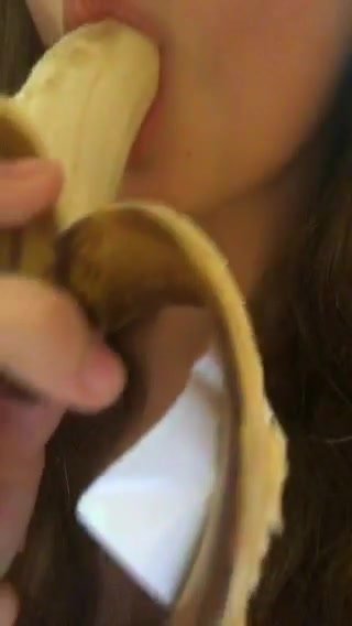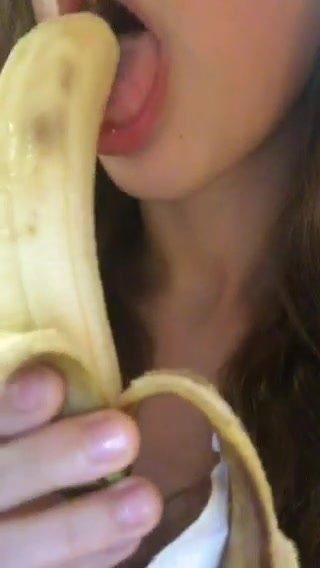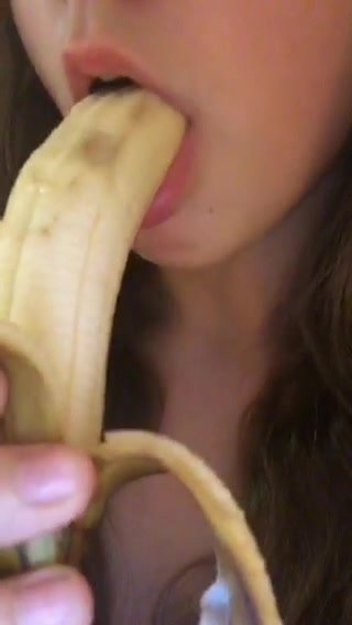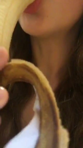 Bella figa mette tutta una banana in bocca