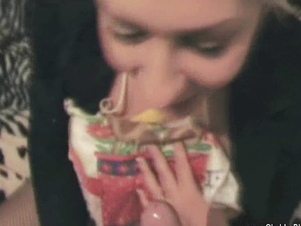<b>Milf bionda spompina ragazzo con gli occhiali</b> - una procace pompinara italiana festeggia il capodanno 2009 con una bella scopata in casa. La cicciona sega succhia e beve sborra.