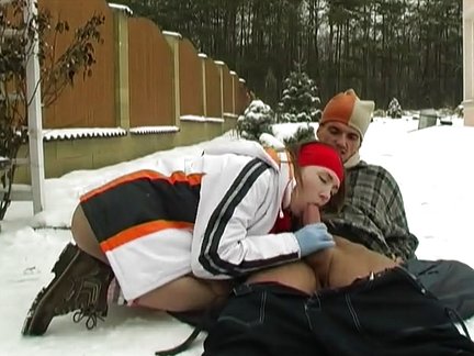 Gran figa succhia cazzo sulla neve