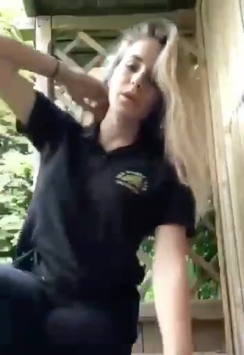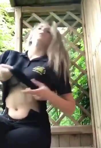 Bella e giovane biondina porca ci mostra le tettone e la passera mentre si tira una bella siga.