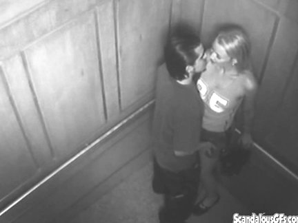 <b>Video spycam in bianco e nero</b> - una biondina amatoriale graziosa viene abbordata in ascensore da un giovanotto bruno che la convince facilmente a fare sesso con lui e intanto una telecamera riprende la scena xxx.