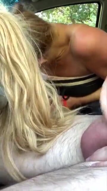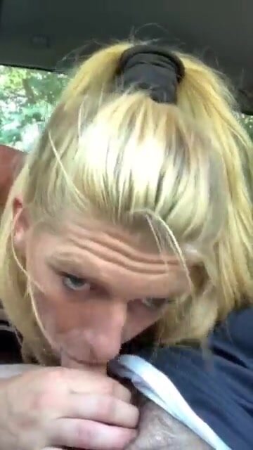 Bella prostituta bionda succhia profondamente in auto