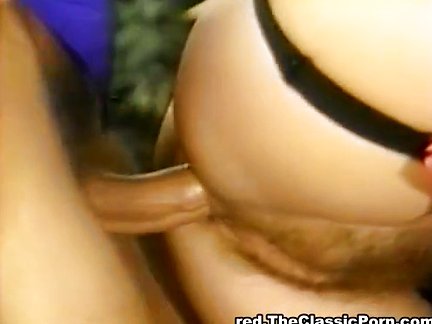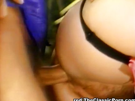 <b>Bella padrona vintage gioca col cazzo</b> - lui le lucida con la lingua le sue scarpette nere e lei, una con grosse zinne ballerine, gli fa un bocchino coi fiocchi prima che il partner sottomesso la inculi outdoor e le sborri sulle chiappe.