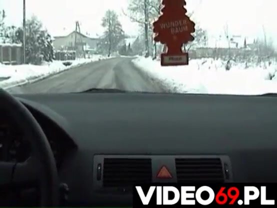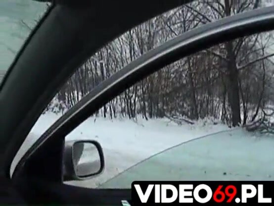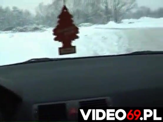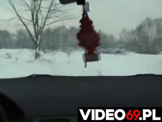 Un cazzuto puttaniere carica una bella puttanella dalla strada in mezzo alla neve per farselo succhiare