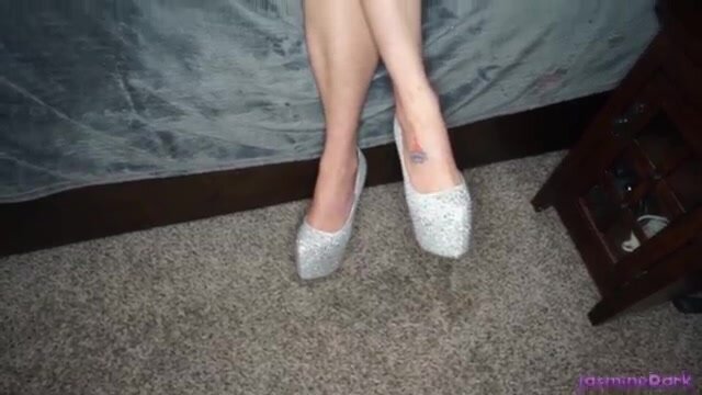 Jasmine si presenta al puttaniere con un dildo in culo che glielo sfila e se la incula sborrando sul pavimento per farglielo leccare