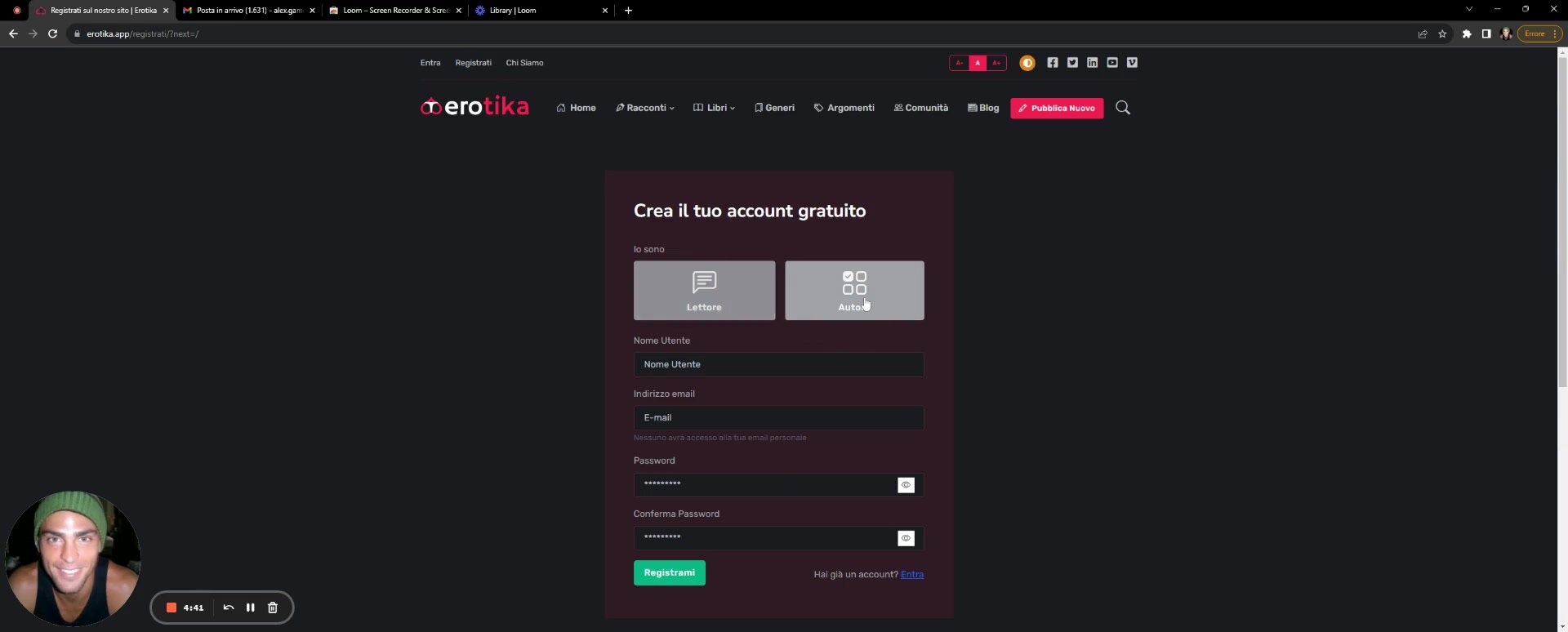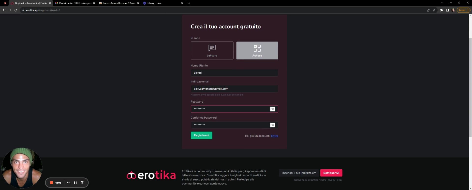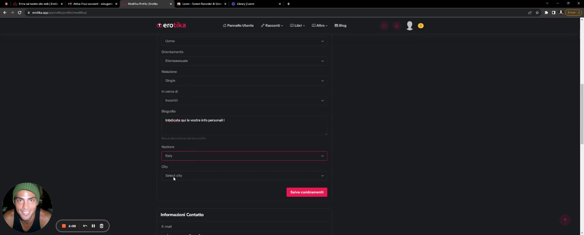 Erotika - Registrazione e completamento profilo - Tutorial 1