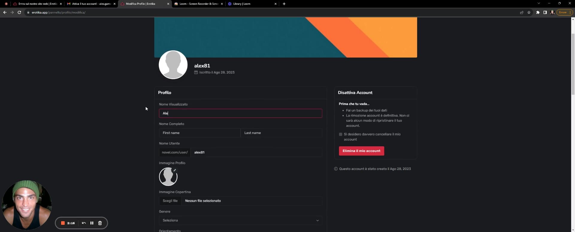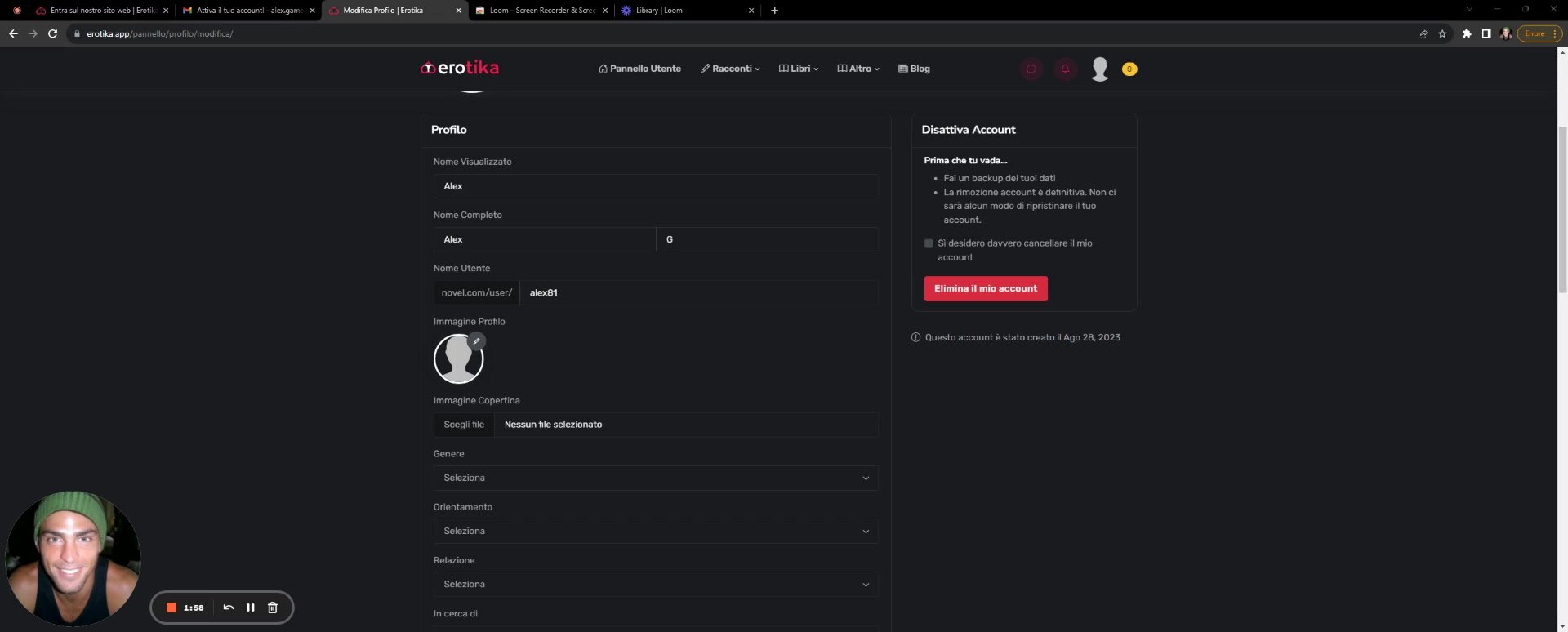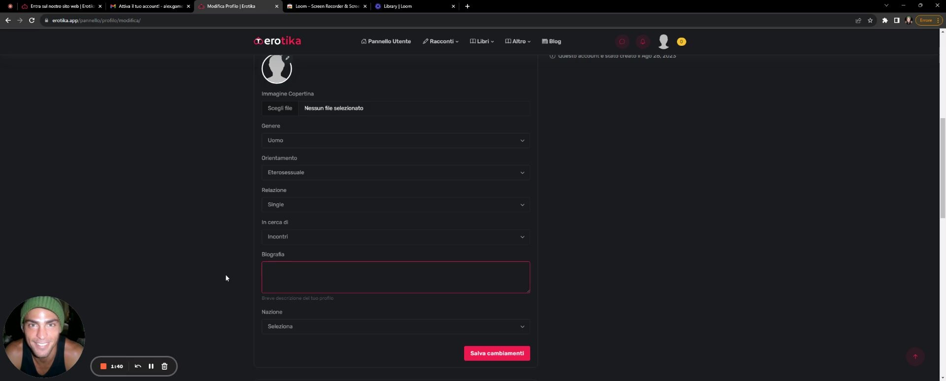 Erotika - Registrazione e completamento profilo - Tutorial 1