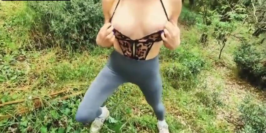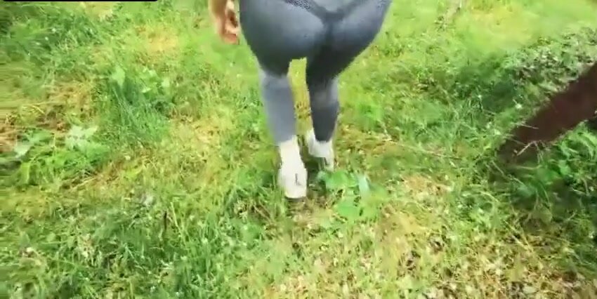 La troia impenitente ha voglia di cazzo così si porta un amico nell'erba alta della foresta e si fa scopare e sborrare sul culo.