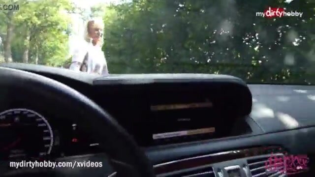 Un arrapato puttaniere cattura una troietta bionda e se la incula in auto