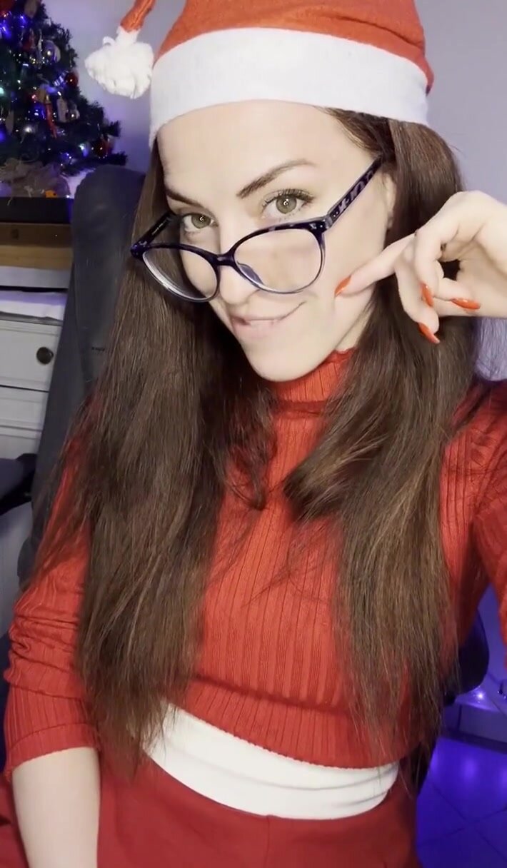 Bella brunetta prosperosa allarga le cosce i ncam e ci augura buon natale e felice anno nuovo !