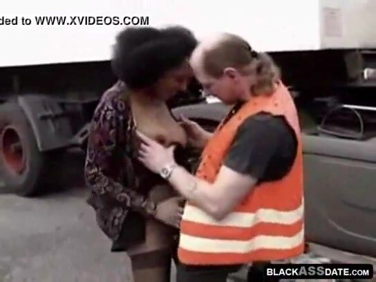 Una puttanella nera cattura un camionista intento a riparare il suo camion... lui tralascia il suo lavoro per scoparla facendole poi bere il suo latte di minchia caldo