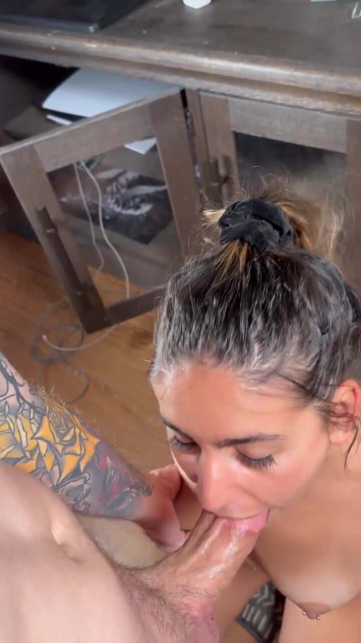 Bella zoccola bruna si gode il grosso cazzo duro in bocca e cerca di stimolarlo per portarlo ad un copioso orgasmo... ce la farà ?