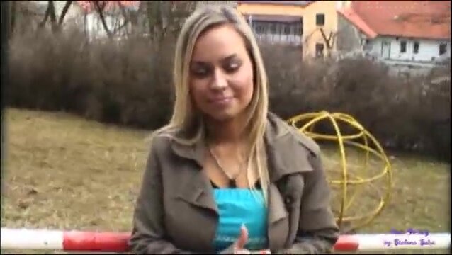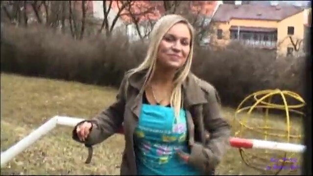 Un cazzuto puttaniere cattura una giovane biondina e le offre dei soldi per vederle la tettine e poi le offre sempre piu soldi per scoparla, mentre scopano vengono disturbati da un passante quindi si imboscano per continuare finche le fa bere il latte di minchia