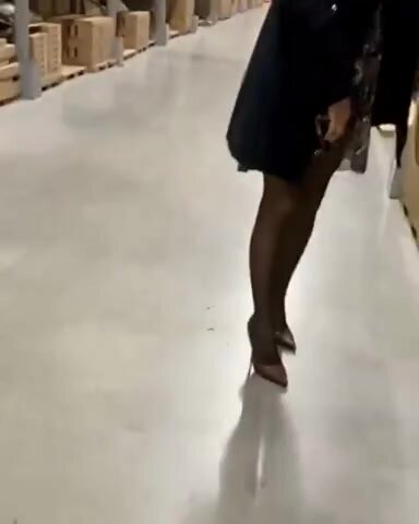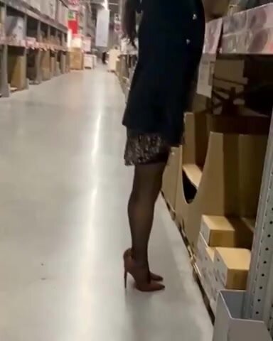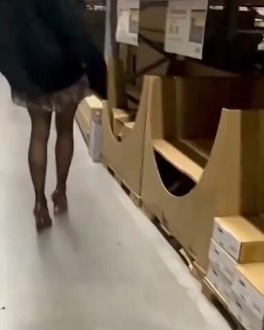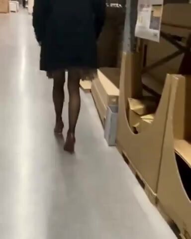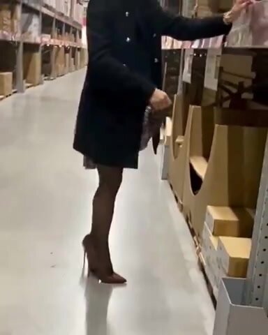 Moglie in minigonna ed autoreggenti si mette in mostra al supermercato