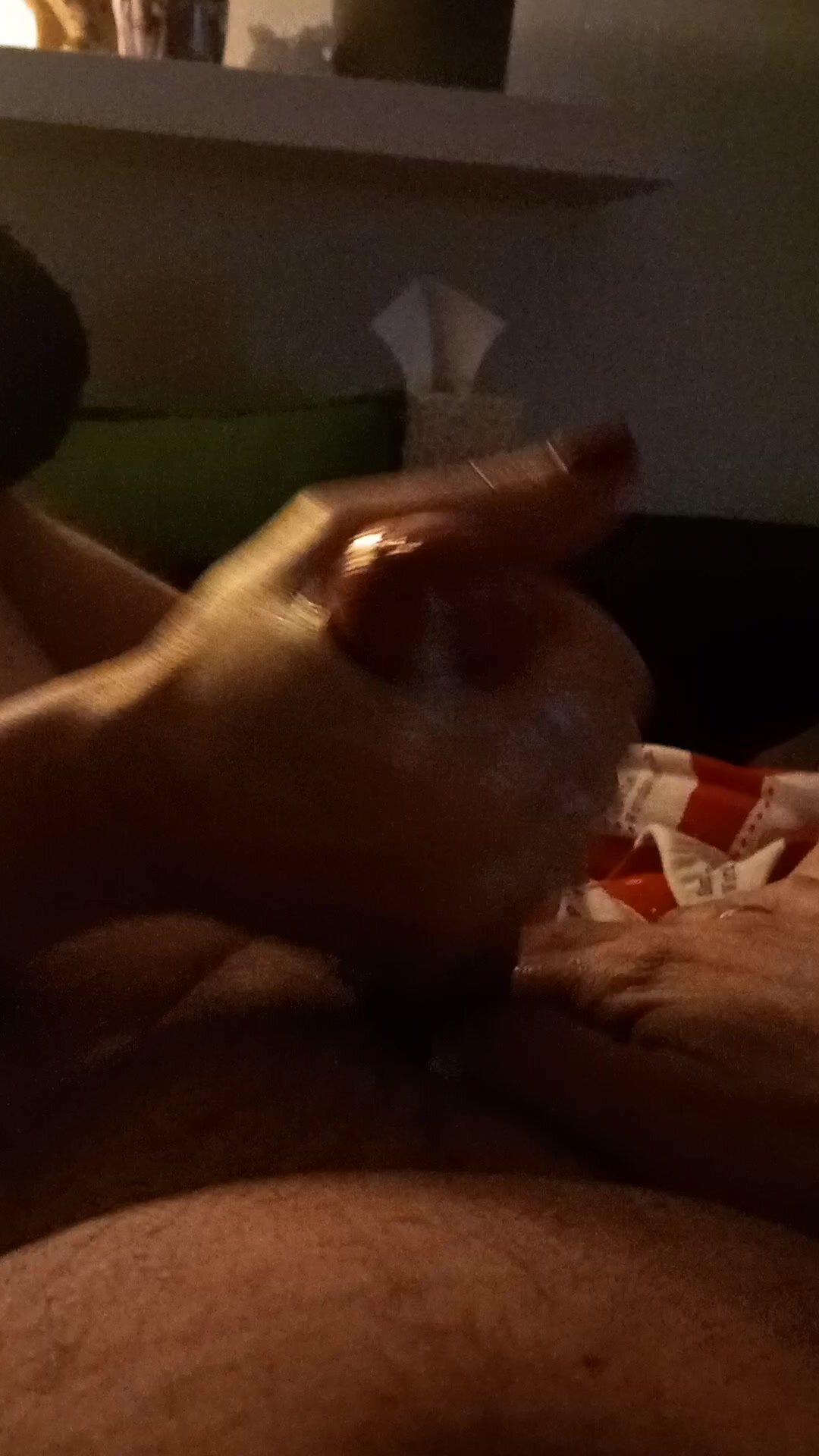 Mi sega sul divano con la mano unta d' olio e io vengo tenendomi strette le palle