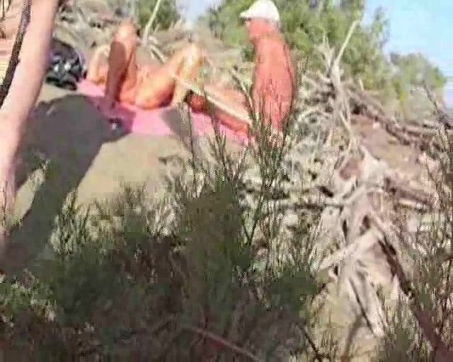 In questo video spia, un giovane guardone si appropinqua ad un gruppetto di turisti che sta prendendo il sole. I due uomini arrapati fissano la fica della loro compagna tenedo saldo tra le mani il loro grosso uccello.
