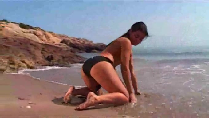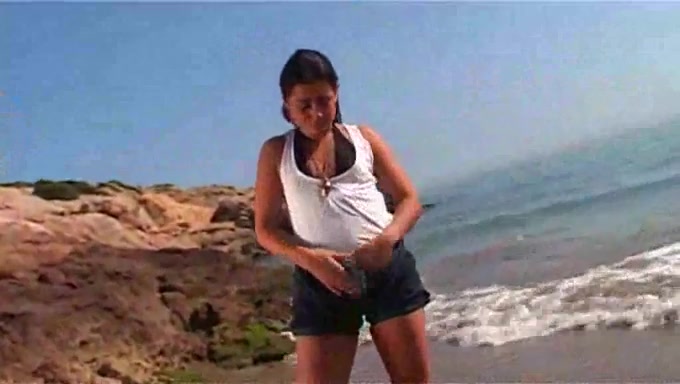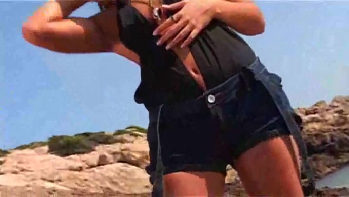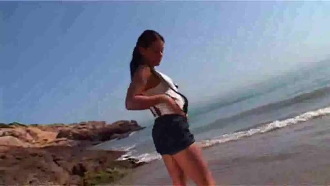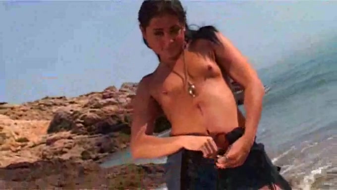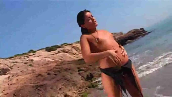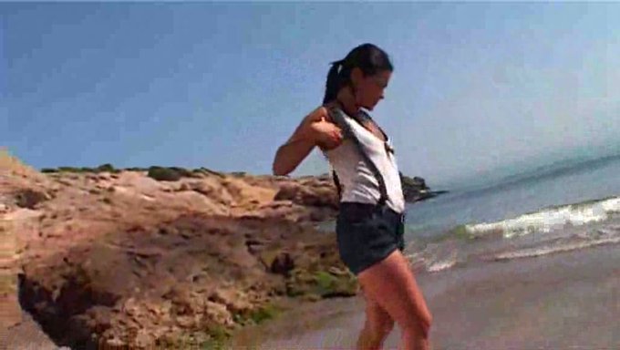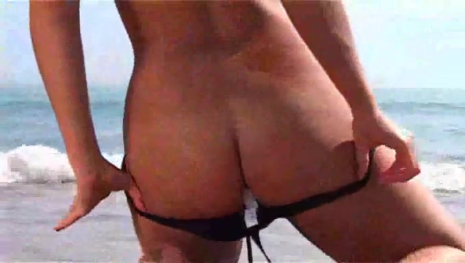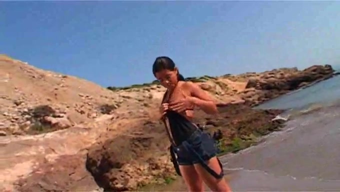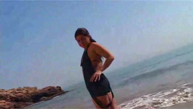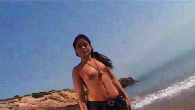 Modella bruna amatoriale striptease in spiaggia