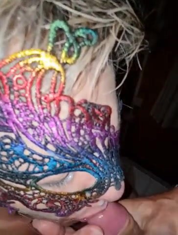 Schizzata in faccia in primo piano e leccata di cappella colante di seme