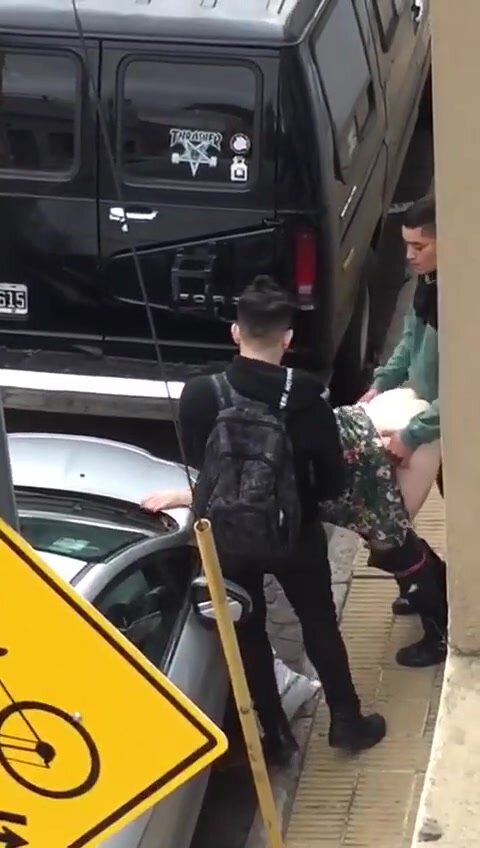 In pieno giornb oad Amsterdam una troia a 90 si fa scopare da due clienti sotto lo sguardo di un ragazzo che li filma di nascosto